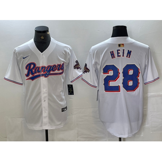 Men's Texas Rangers #28 Jonah Heim Nike White Home 2023 World Series Champions Limited Jersey