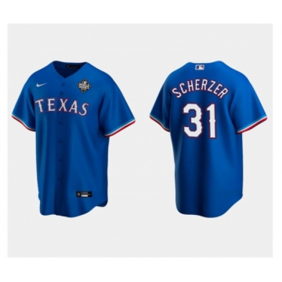 Men's Texas Rangers #31 Max Scherzer Royal 2023 World Series Stitched Baseball Jersey
