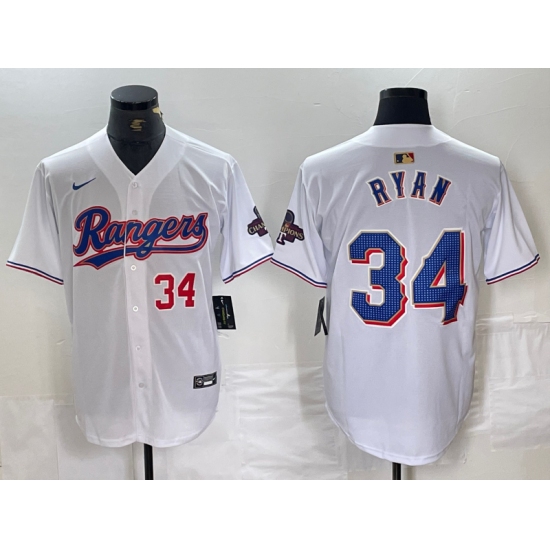 Men's Texas Rangers #34 Nolan Ryan Number White 2024 Gold Collection Limited Cool Base Jersey