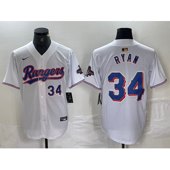 Men's Texas Rangers #34 Nolan Ryan Number White 2024 Gold Collection Limited Cool Base Jerseys