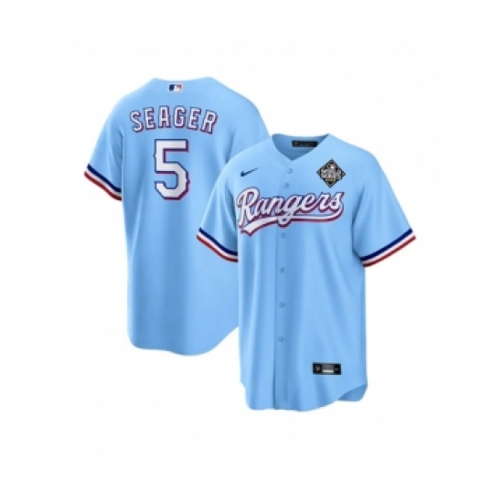 Men's Texas Rangers #5 Corey Seager Blue 2023 World Series Stitched Baseball Jersey