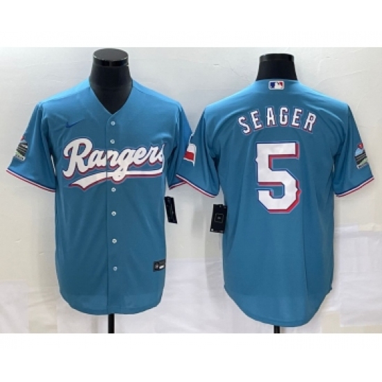 Men's Texas Rangers #5 Corey Seager Light Blue Stitched Cool Base Nike Jersey