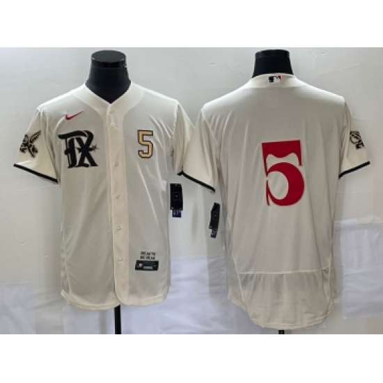 >Men's Texas Rangers #5 Corey Seager Number Cream 2023 City Connect Flex Base Stitched Jersey