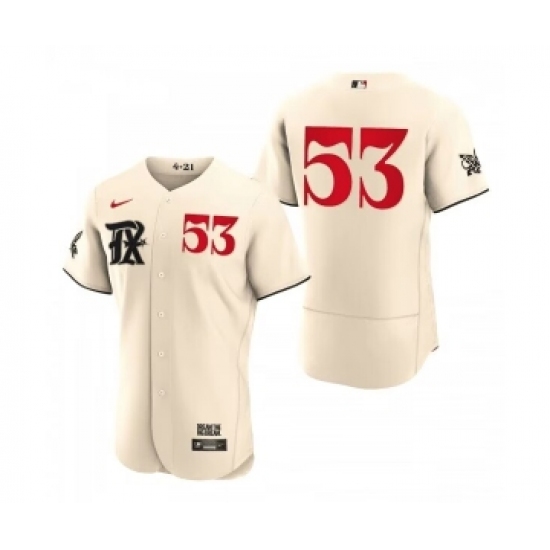 >Men's Texas Rangers #53 Adolis García Cream 2023 City Connect Flex Base Stitched Baseball Jersey
