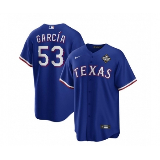 >Men's Texas Rangers #53 Adolis García Royal 2023 World Series Stitched Baseball Jersey