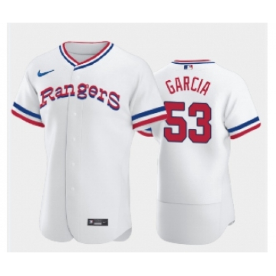 Men's Texas Rangers #53 Adolis Garcia White Throwback Stitched Flex Base Nike Jersey