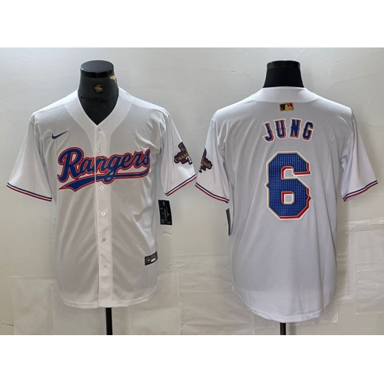 Men's Texas Rangers #6 Josh Jung 2023 White World Series Stitched Baseball Jersey