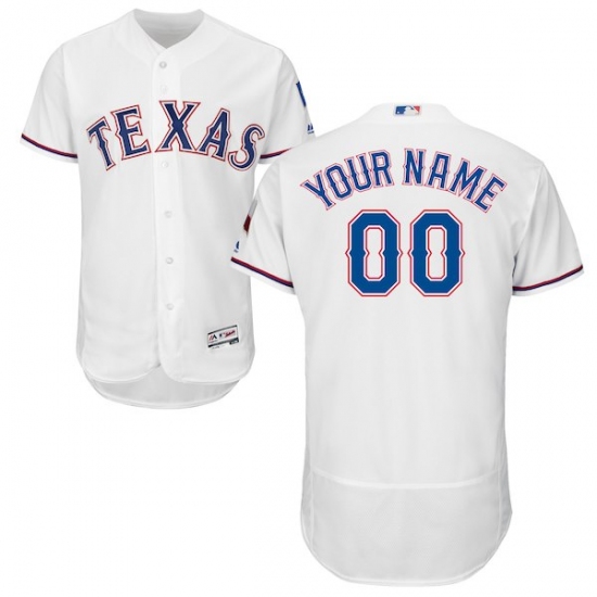 >Men's Texas Rangers Majestic Home White Flex Base Authentic Collection Custom Jersey