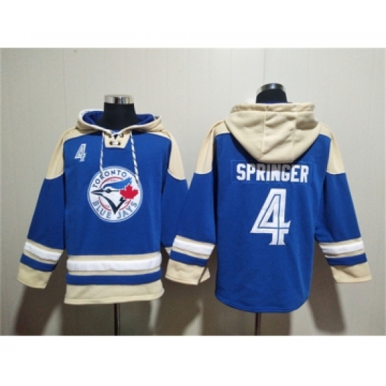 >Men's Toronto Blue Jays #4 George Springer Royal Ageless Must-Have Lace-Up Pullover Hoodie