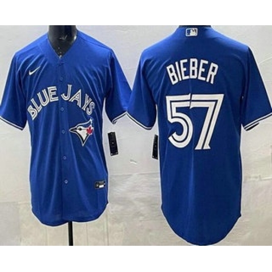 Men's Toronto Blue Jays #57 Shane Bieber Blue Cool Base Jersey