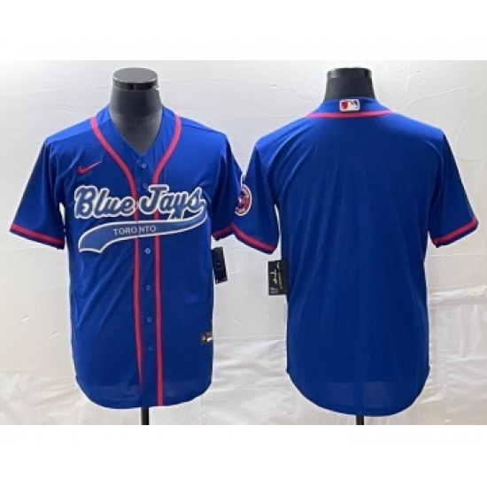 >Men's Toronto Blue Jays Blank Blue Cool Base Stitched Baseball Jersey