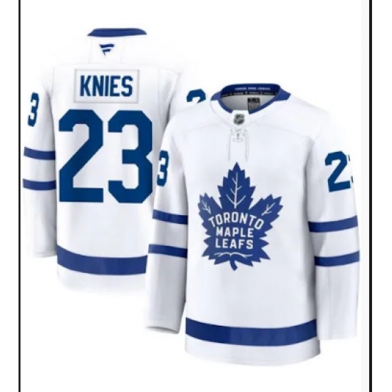 >Men's Toronto Maple Leafs #23 Matthew Knies White Stitched Jersey