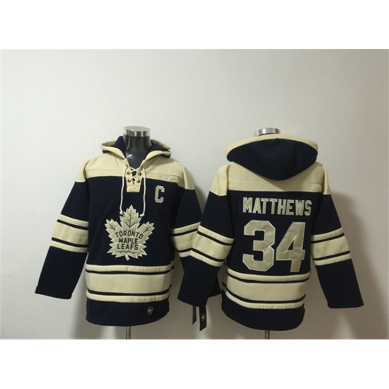 Men's Toronto Maple Leafs #34 Auston Matthews Blue Ageless Must-Have Lace-Up Pullover Hockey Hoodie