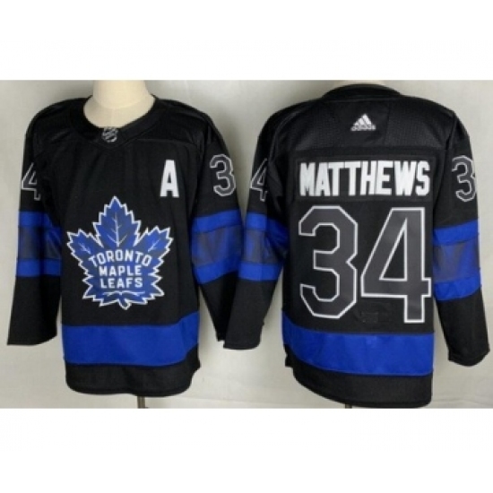Men's Adidas Toronto Maple Leafs #34 Auston Matthews Authentic Black Team Logo Fashion NHL Jersey