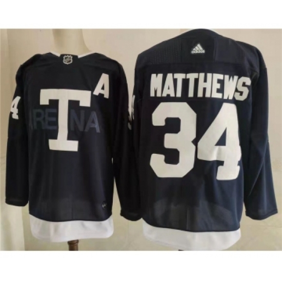 >Men's Toronto Maple Leafs 34 Auston Matthews Navy 2022 NHL Heritage Classic Adidas Jersey