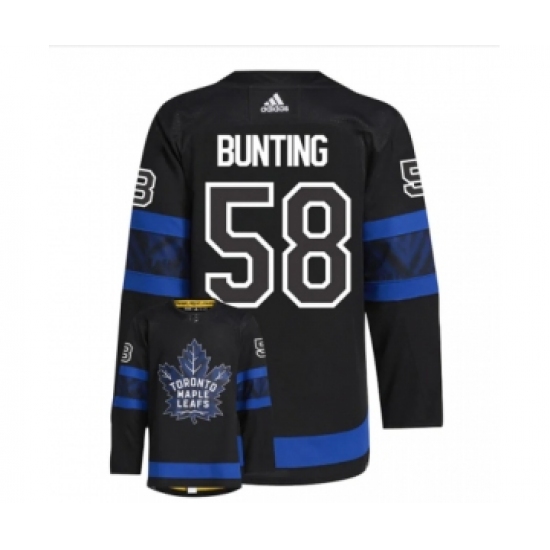 Men's Toronto Maple Leafs Black #58 Michael Bunting Blue 2022 Reverse Retro Stitched Jersey