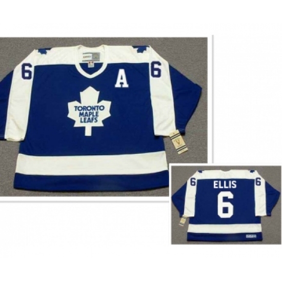 >Men's Toronto Maple Leafs #6 Ron Ellis With A Patch Blue With White Throwback CCM Jersey