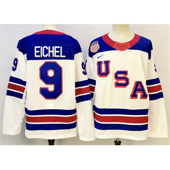 >Men's USA #9 Jack Eichel White 2025-2026 Stitched Jersey