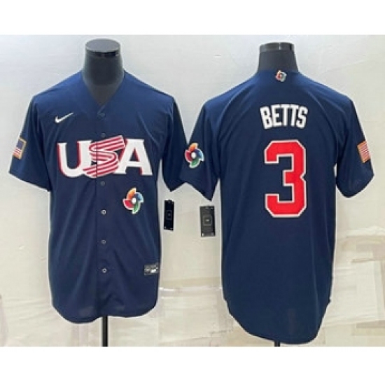 Men's USA Baseball #3 Mookie Betts 2023 Navy World Baseball Classic Stitched Jersey