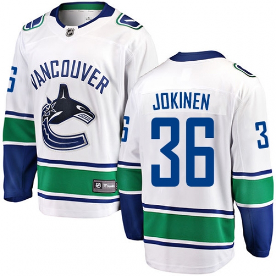 >Men's Vancouver Canucks #36 Jussi Jokinen Fanatics Branded White Away Breakaway NHL Jersey