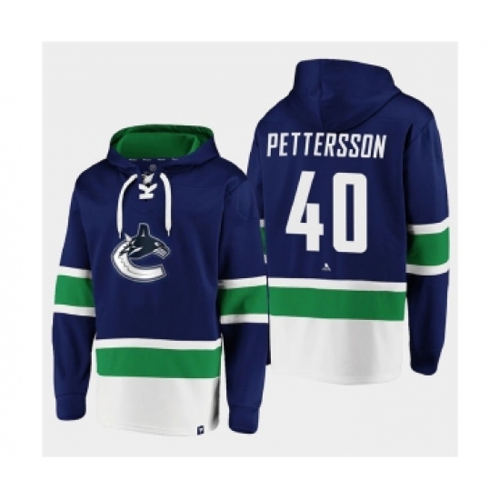 >Men's Vancouver Canucks #40 Elias Pettersson Blue All Stitched Sweatshirt Hoodie