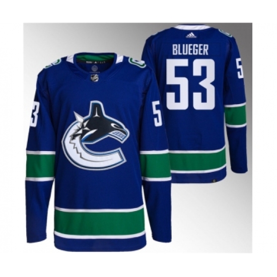 Men's Vancouver Canucks #53 Teddy Blueger Blue Retro Stitched Jersey