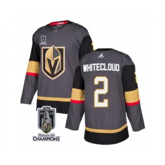 Men's Vegas Golden Knights #2 Zach Whitecloud Gray 2023 Stanley Cup Champions Stitched Jersey