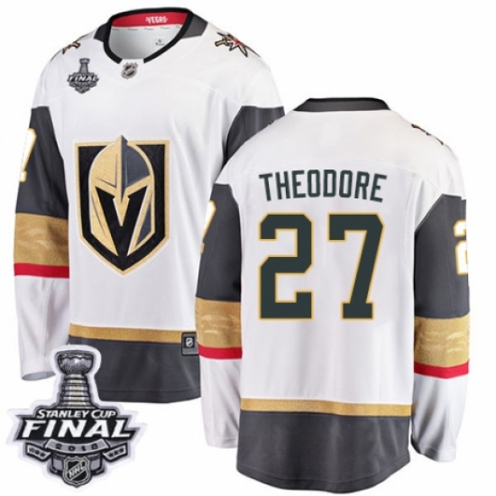 Men's Vegas Golden Knights #27 Shea Theodore Authentic White Away Fanatics Branded Breakaway 2018 Stanley Cup Final NHL Jersey