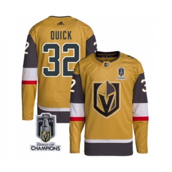 Men's Vegas Golden Knights #32 Jonathan Quick Gold 2023 Stanley Cup Champions Stitched Jersey