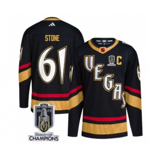 Men's Vegas Golden Knights #61 Mark Stone Black 2023 Stanley Cup Champions Reverse Retro Stitched Jersey