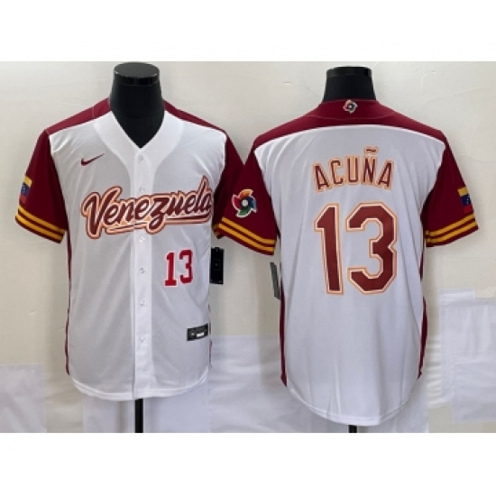 >Men's Venezuela Baseball #13 Ronald Acuna Jr Number 2023 White Red World Classic Stitched Jersey