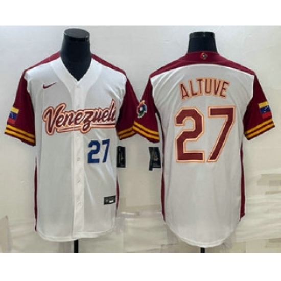 Men's Venezuela Baseball #27 José Altuve 2023 White World Baseball Classic Stitched Jersey