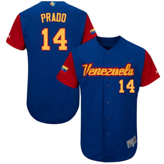 Men's Venezuela Baseball Majestic #14 Martin Prado Royal Blue 2017 World Baseball Classic Authentic Team Jersey