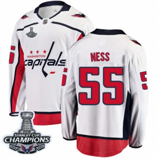Men's Washington Capitals #55 Aaron Ness Fanatics Branded White Away Breakaway 2018 Stanley Cup Final Champions NHL Jersey