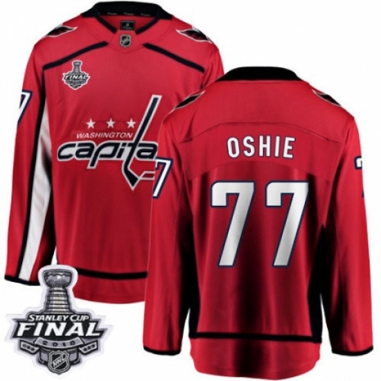 >Men's Washington Capitals #77 T.J. Oshie Fanatics Branded Red Home Breakaway 2018 Stanley Cup Final NHL Jersey