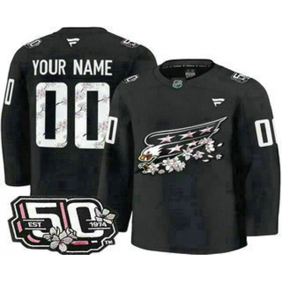 >Men's Washington Capitals Customized Black 50th Anniversary Authentic Jersey
