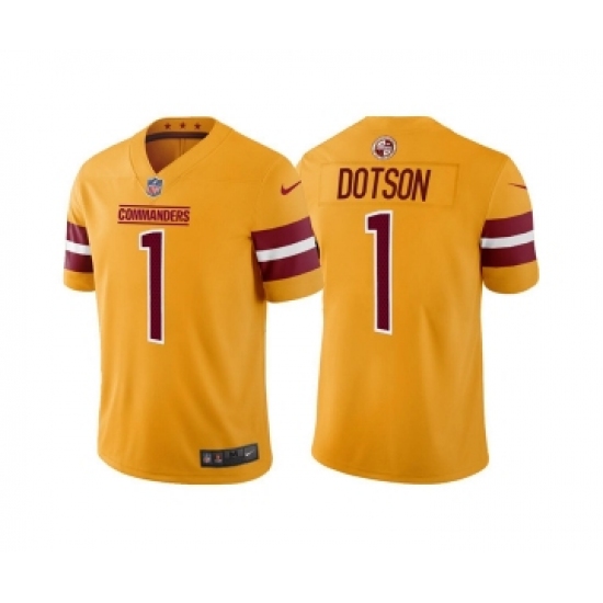 Men's Washington Commanders #1 Jahan Dotson Gold Vapor Untouchable Stitched Football Jersey