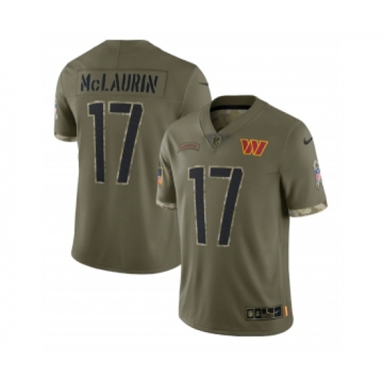 >Men's Washington Commanders #17 Terry McLaurin 2022 Olive Salute To Service Limited Stitched Jersey