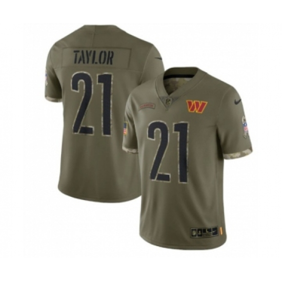 >Men's Washington Commanders #21 Sean Taylor 2022 Olive Salute To Service Limited Stitched Jersey