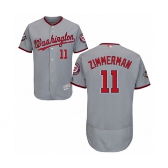 Men's Washington Nationals #11 Ryan Zimmerman Grey Road Flex Base Authentic Collection 2019 World Series Bound Baseball Jersey