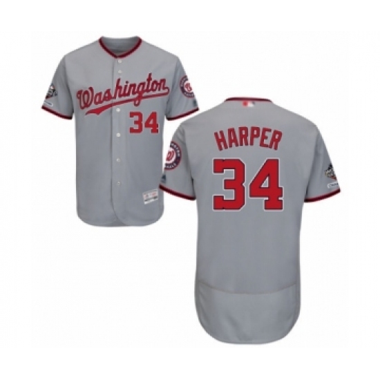 Men's Washington Nationals #34 Bryce Harper Grey Road Flex Base Authentic Collection 2019 World Series Champions Baseball Jersey