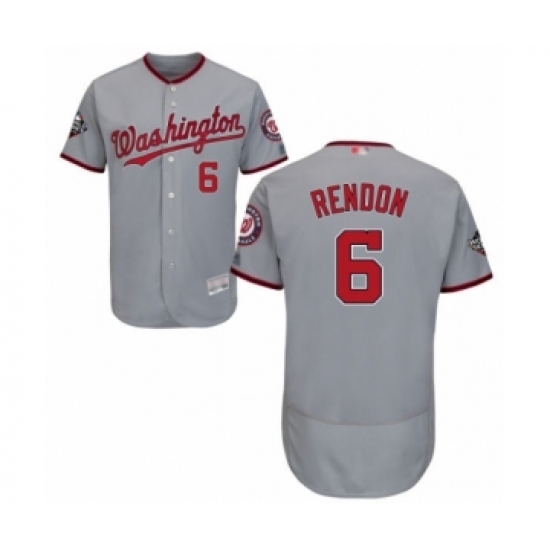 Men's Washington Nationals #6 Anthony Rendon Grey Road Flex Base Authentic Collection 2019 World Series Bound Baseball Jersey