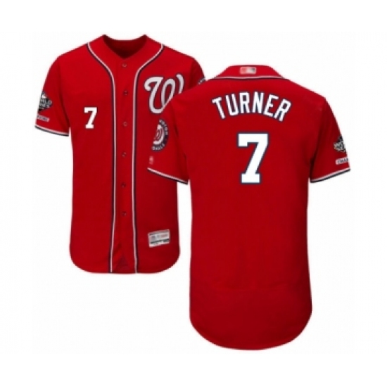 >Men's Washington Nationals #7 Trea Turner Red Alternate Flex Base Authentic Collection 2019 World Series Champions Baseball Jersey