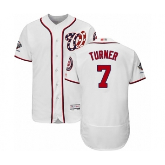 Men's Washington Nationals #7 Trea Turner White Home Flex Base Authentic Collection 2019 World Series Champions Baseball Jersey