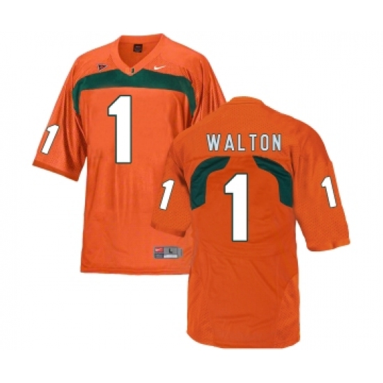 >Miami Hurricanes 1 Mark Walton Orange College Football Jersey