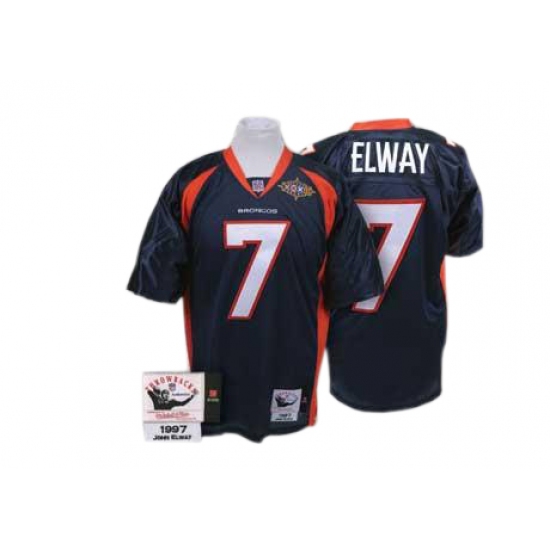 Mitchell And Ness Denver Broncos #7 John Elway Navy Blue Super Bowl Patch Authentic Throwback NFL Jersey