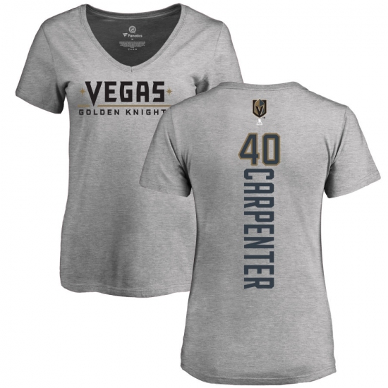 >NHL Women's Adidas Vegas Golden Knights #40 Ryan Carpenter Gray Backer Slim Fit V-Neck T-Shir