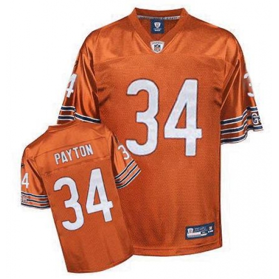 The high-quality Reebok Chicago Bears #34 Walter Payton Premier Jersey Orange Alternate Premier EQT Throwback NFL Jersey is made of heavier fabric, with nylon diamond weave mesh. This team-colored jersey showcases the embroidered NFL® Equipment patch at the point on the v-neck collar and a team specific jock tag at the lower left front above the hem. The officially licensed Premier jersey proudly displays the sewn on, single-layer tackle twill team graphics at the chest, back and sleeves. Players name which is stiched shown at the upper back on a sewn down nameplate, The players number which 100% stitched is displayed in tackle twill on the chest, back and sleeves, NFL® Equipment jock tag shown at lower left front above the hem, Decorated in the team colors, Officially licensed.
