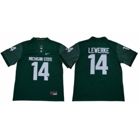 >Spartans #14 Brian Lewerke Green Limited Stitched NCAA Jersey