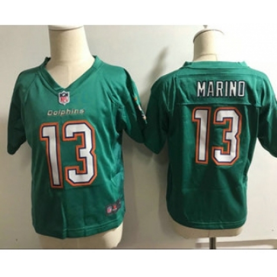 >Toddler Miami Dolphins #13 Dan Marino Aqua Green Alternate Stitched NFL Nike Game Jersey